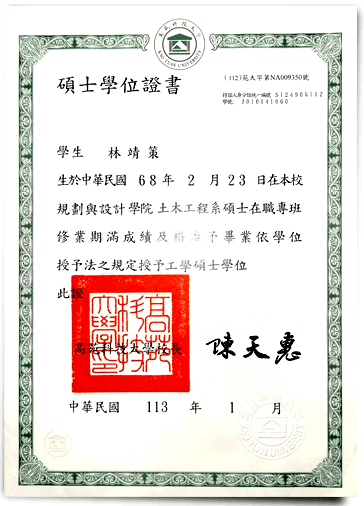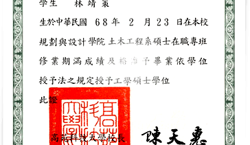 土木工程系碩士學位證書