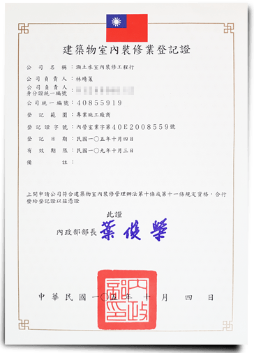 建築物室內裝修業登記證